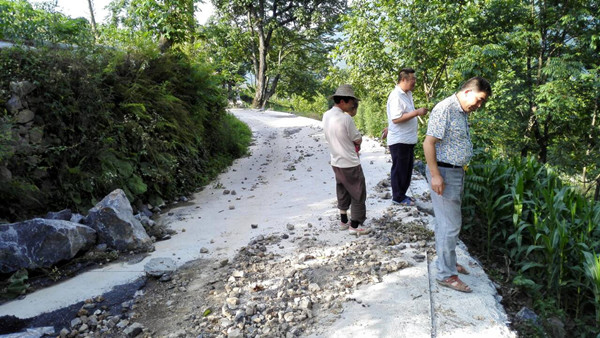 疏通村级主干道。关键时刻,人大代表们心系群众。7月19日,大雨刚停,镇人大代表、梓榔坪村党支部书记何国清和县人大代表、梓榔坪村村委会主任覃万银就带领梓榔坪村祥官护路队的同志到各组实地查看公路损毁情况。在发现七组二岩公路被大水冲毁后,县、镇人大代表、党员干部积极主动帮助疏通公路。何代表联系铲车,覃代表主动提供自己的挖掘机,群众主动义务投入劳动。经过一个星期的抢修,疏通了公路,解决了15个农户的出行难题,他们的蔬菜也可以顺利的运输出去了。七组覃培成说:“我们选的人大代表的确是在为老百姓办实事,在抢险救灾面前总是冲在最前面”。
